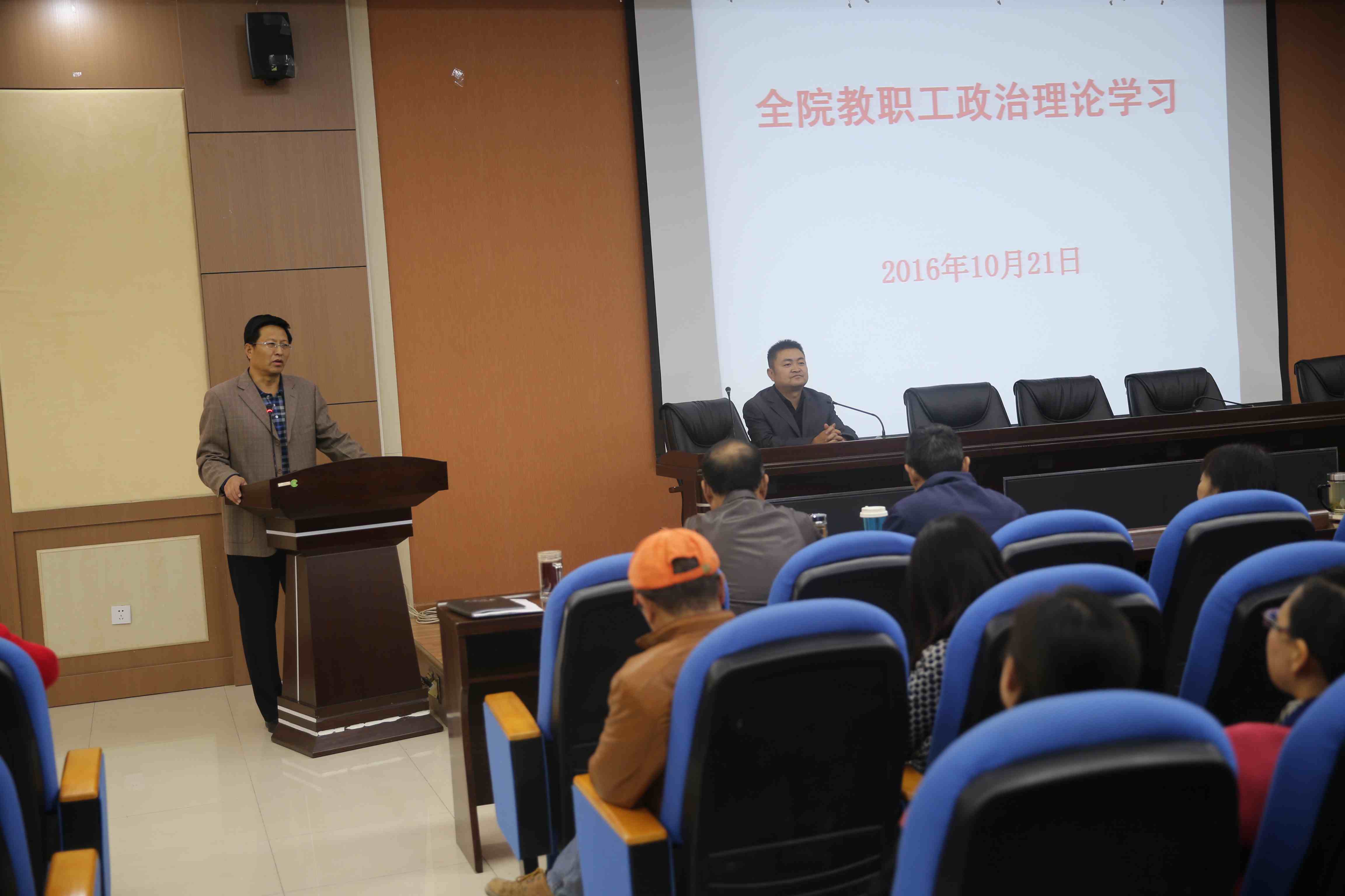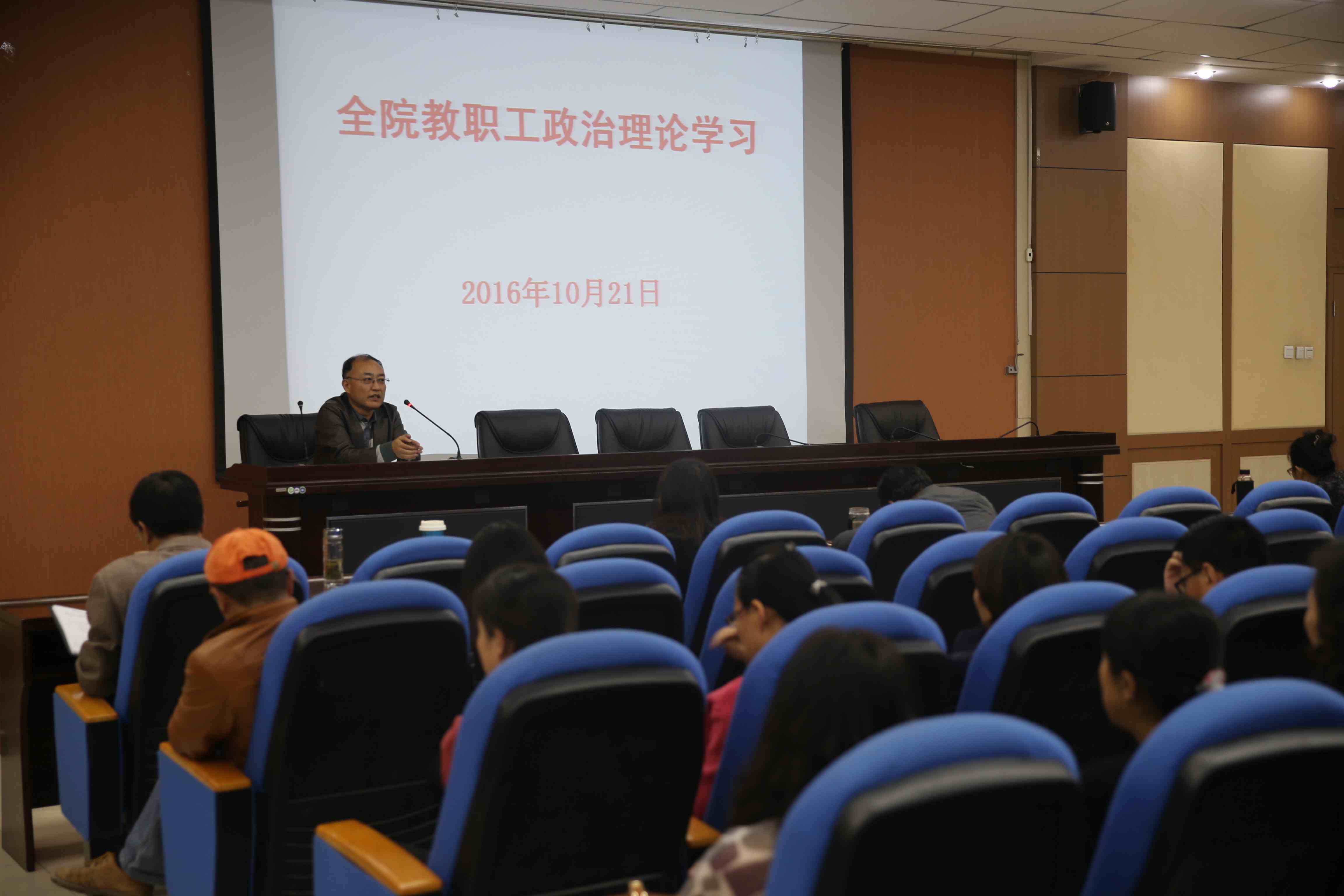 10月21日下午,学院在学术报告厅召开全院教职工政治理论学习会,院领导及全教职工参加会议。邢建民副书记主持会议。