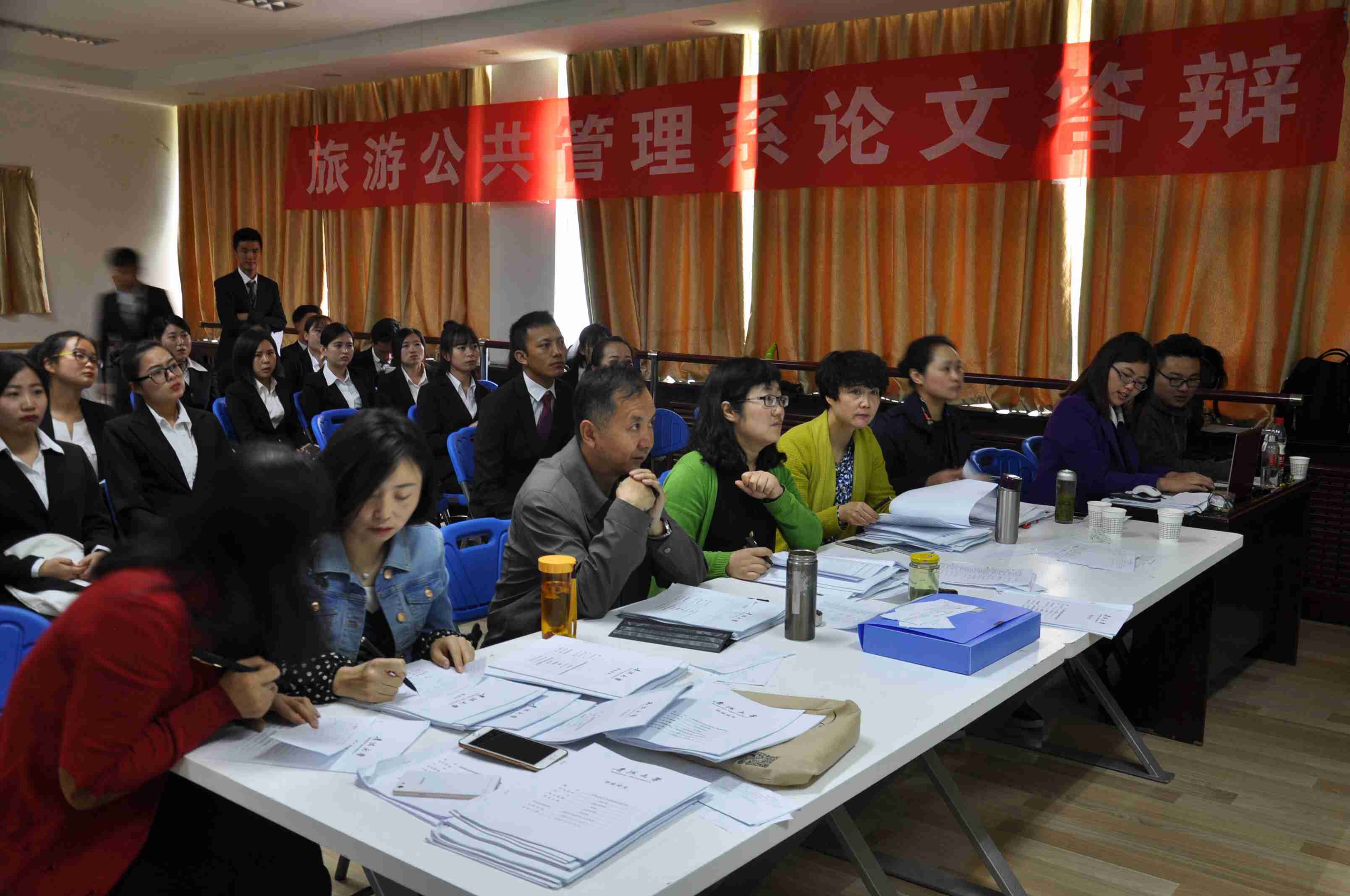 答辩过程中,学生以PPT形式进行论文(设计)陈述,介绍其研究背景和选题意义,详细阐述有关研究方法和结论。答辩评委从论文撰写质量、对待论文的态度、研究水平与实际能力、学术水平与创新能力对答辩人进行独立提问,答辩人依据论文和专业知识进行回答,有效地对学生综合素质进行了一次全面考核。答辩过程中秩序严谨、组织得力,取得了较好的效果。期间很多低年级同学到场进行了学习观摩。最后,评委老师也针对性地对学生论文中的不足或缺点提出了中肯的修改意见。院领导、教学管理部相关人员对整个工作进行了检查和指导。