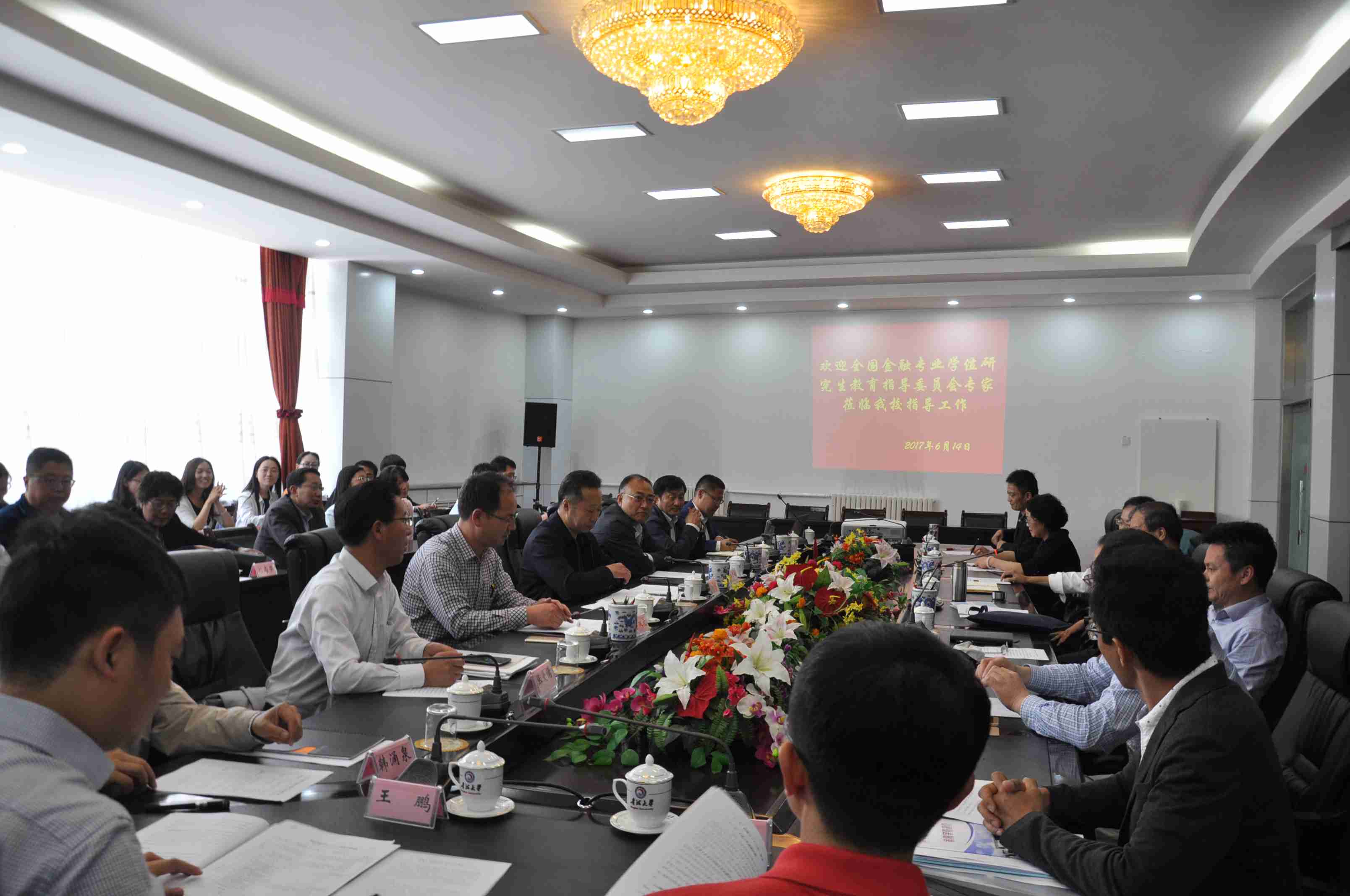 6月14日,全国金融专业学位研究生教育指导委员会莅临18禁直播 ,指导金融专业硕士研究生工作。参加指导会的有全国金融专业学位研究生教育指导委员会主任委员郭庆平、秘书长赵锡军,委员崔建军、伍旭川,人民银行西宁市中心支行行长林建华、副行长陈希凤,青海民族大学研究生院副院长盛国斌、经济学院副院长张明教授。校常务副校长陈刚、校研究生院党委书记张爱儒,院领导张宏岩、李双元及部分师生参加了本次指导会。指导会由陈刚副校长主持。