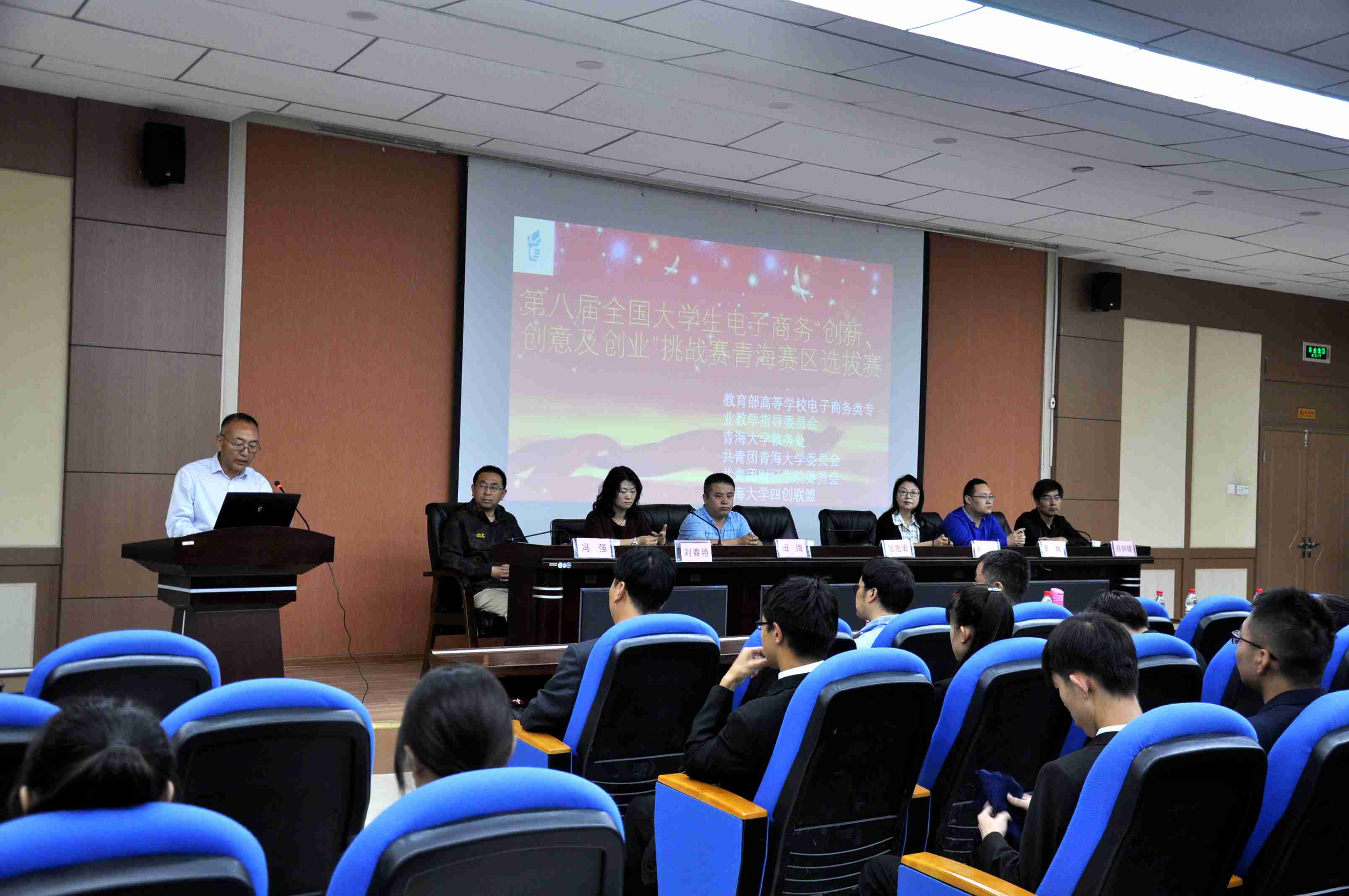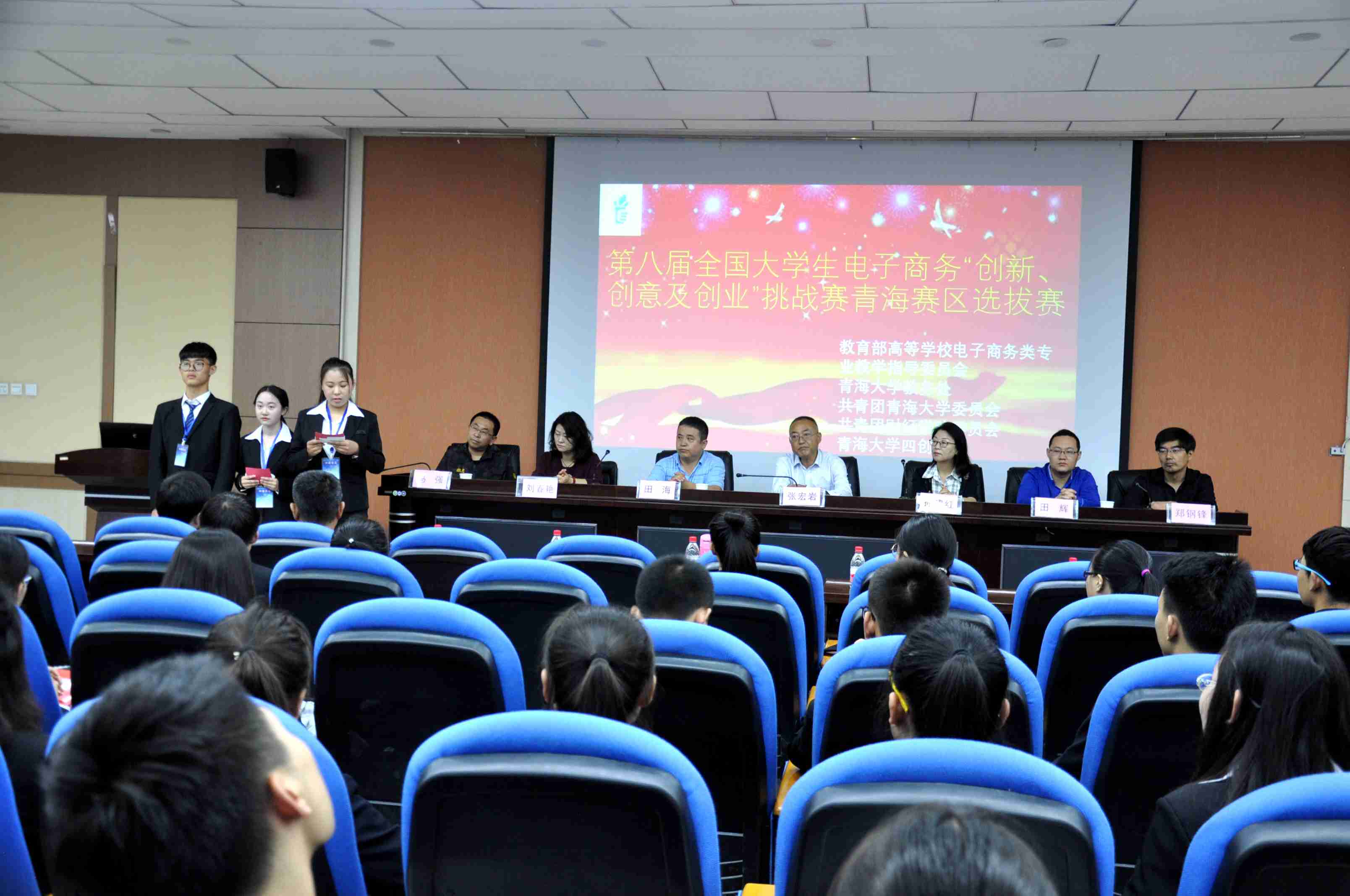 6月24--25日,第八届全国大学生电子商务“创新、创意及创业”挑战赛青海赛区选拔赛在18禁直播 学术报告厅举行。教育部高等学校教学指导委员会委员宁波大学孙建红教授、太平洋证券青海分公司副总经理田辉先生,青海众创空间创业孵化服务有限公司行政总经理田海先生,18禁直播 刘春艳教授、冯强副教授,青海民族大学郑钢锋教授等开幕式,开幕式由18禁直播 党委书记张宏岩教授主持。
