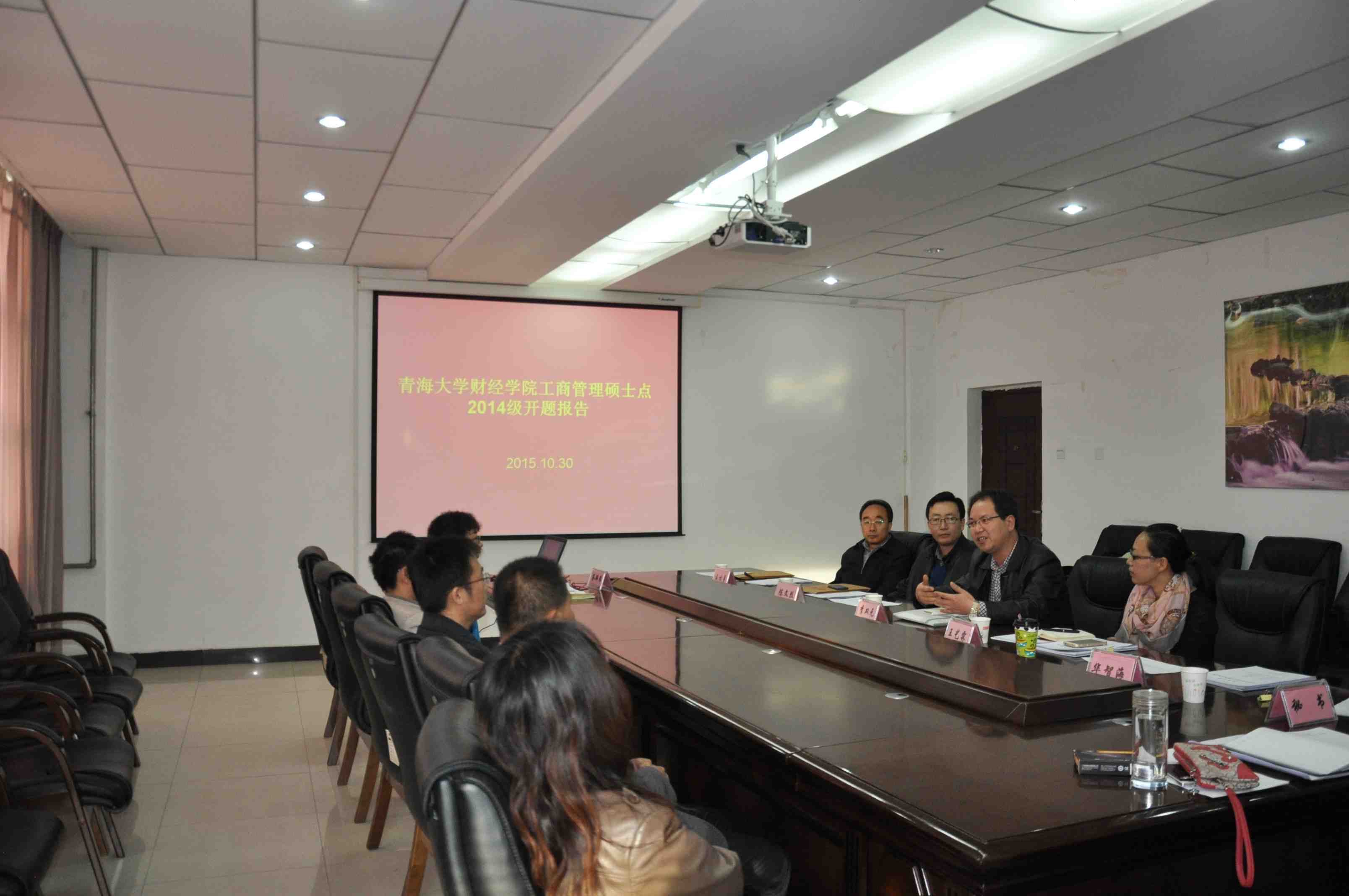 院学位点高度重视2014级研究生开题答辩工作,成立了张宏岩院长为组长的领导小组和青海师范大学王士勇教授与青海省委党校孙凌宇教授为组长的评审组。答辩前,评审小组召开了简短的预备会。会上,李双元副院长对各位专家的到来表示感谢,同时希望各位专家一定要严格把关,毫无保留的指出研究生开题答辩中存在的问题,让学生认识到存在的问题,才能更好的完成毕业论文的写作。