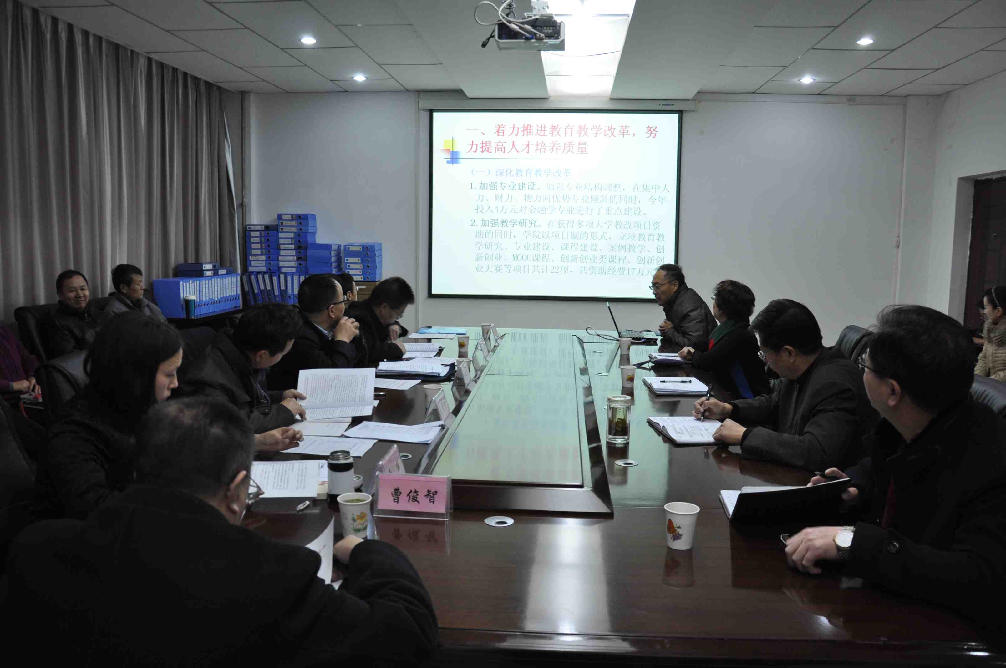 2016年1月7日上午,赵之重副校长带领校年度考核第四考核组成员一行六人来18禁直播 开展了单位年度考核。院领导班子、各部负责人、教师代表、职能部门相关人员参加了考核会。
