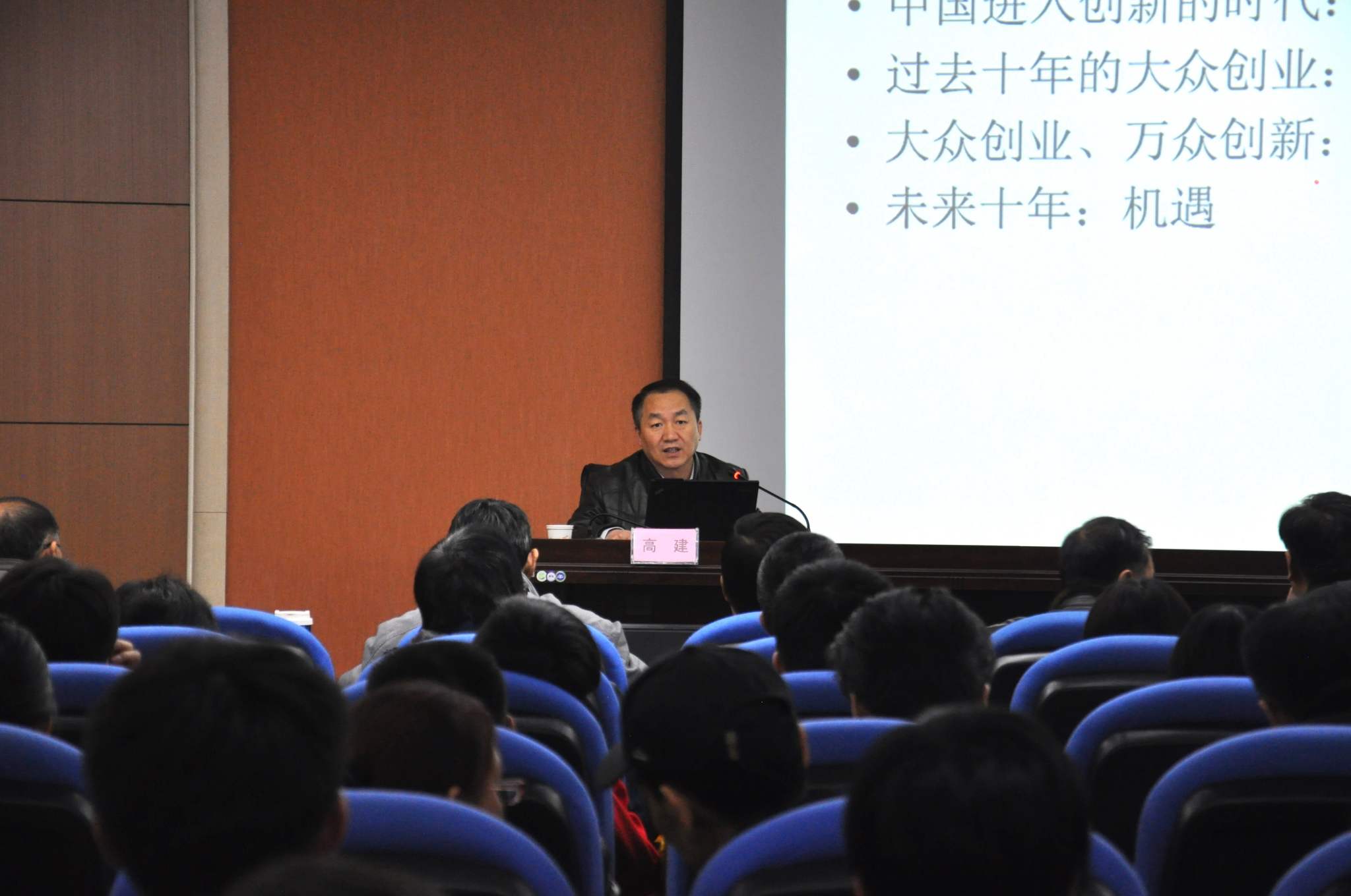 2015年12月22日,清华大学经济管理学院党委书记高建教授应邀来18禁直播 对18禁直播 “十三五”发展规划的编制及创新创业教育工作进行指导,并作“大众创业、万众创新的时代机遇”的学术报告。