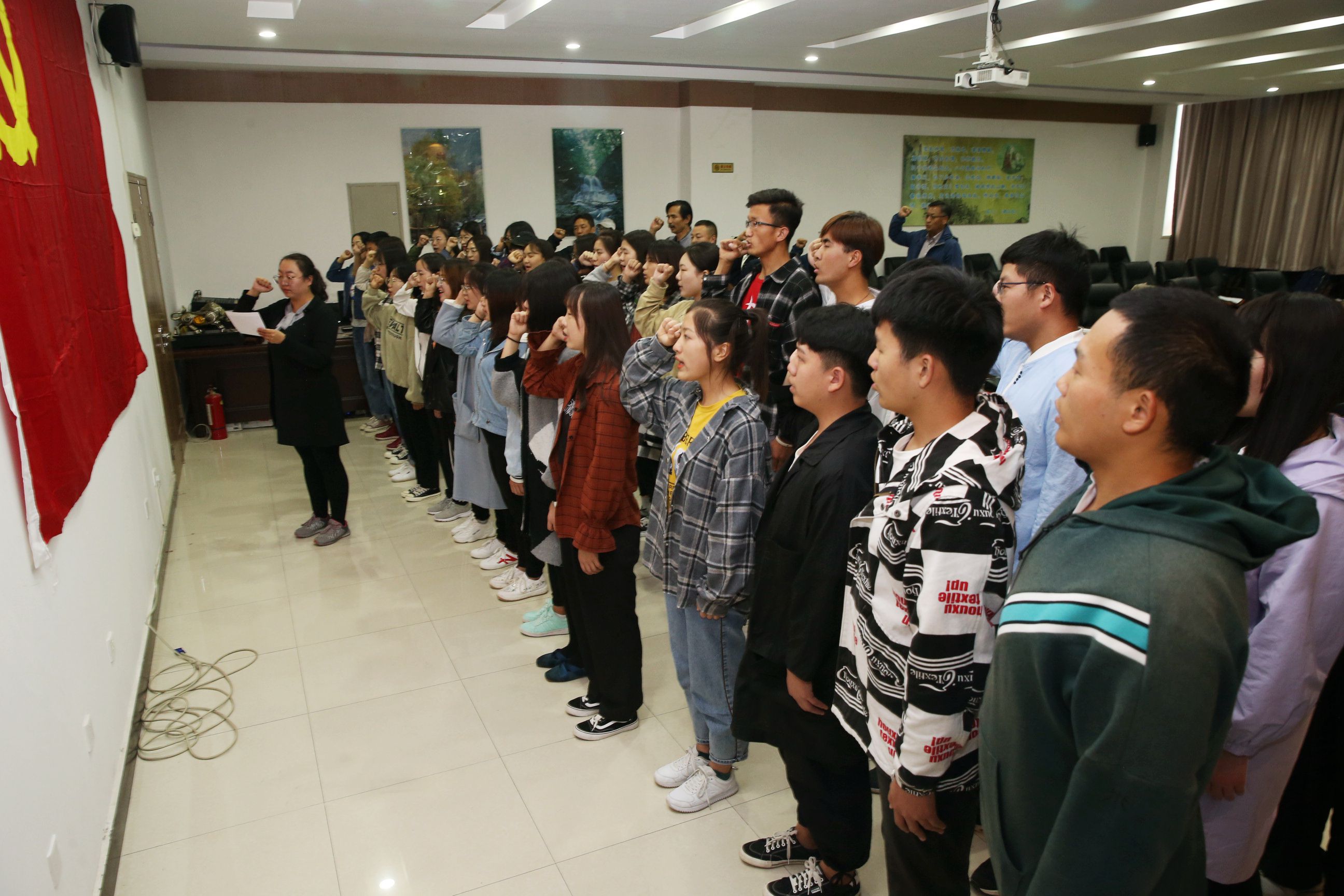 会上,40余名中共预备党员面对鲜红的党旗进行了庄严的宣誓,与会的在职党员重温了入党誓词。