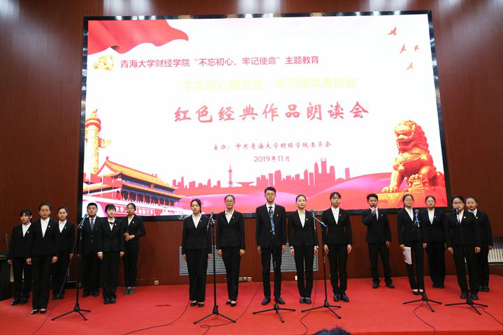 朗读会上,旅游与工商管理系教工第一党支部带来毛泽东的文章《为人民服务》,会计学系教工党支部朗读了著名诗人舒婷的《祖国啊,我亲爱的祖国》…回味经典,再次受到思想的洗礼;金融学系学生党支部的《我的祖国》,旅游与工商管理系学生第二党支部的《祖国颂》,经济学系学生党支部的《不忘初心,继续前进》,会计学系学生党支部的《我们的青年时代》等作品,无不表达了青年学子对祖国深深的爱和他们远大的理想抱负;金融学系教工党支部朗读了由刘波老师创作的作品《放歌大青海》,机关党支部带来由胡佳敏老师执笔的原创作品《师者初心赋》,既显示了老师们妙笔生花的写作功底,又结合实际表达了本次主题教育所感受到的效果。