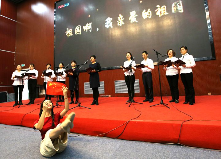 朗读会在大家齐唱的《歌唱祖国》的雄壮歌声中圆满结束。